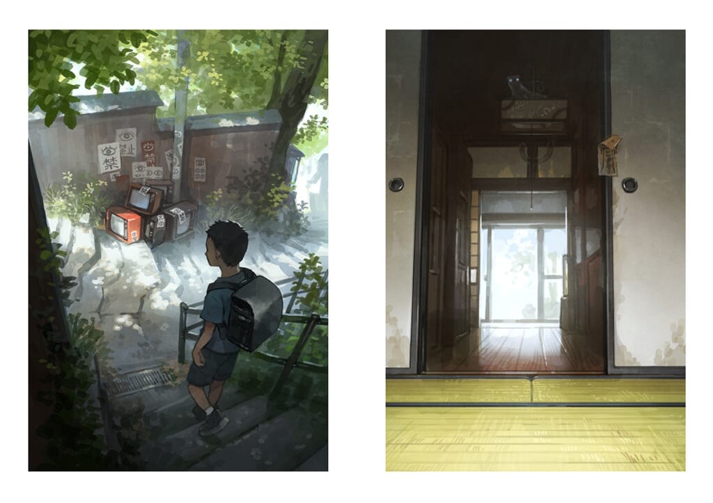 僕は、表紙絵にもなったモン・サン=ミシェルや姫路城、白川郷の古民家、さざえ堂、国立国会図書館などのほか、見開きイラストも2枚描いています。仕掛け窓で建物の内部を覗けたり、詳しい解説を読めたりと、小学校低学年でも楽しめる内容です。